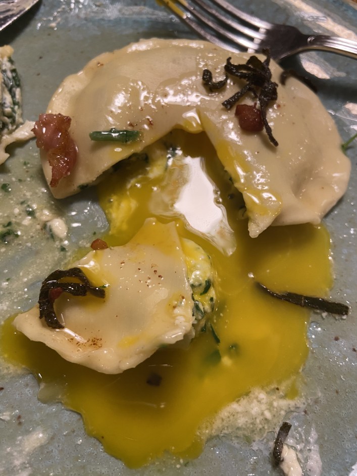 Just like how I have my most memorable restaurant meal (see my risotto recipe), my dad has one too. His is Raviolo al’ Uovo or Egg Yolk Ravioli. I meant to make this for his Christmas present but here we are in October (sorry dad). I was so nervous that this would not work out and while it wasn’t perfect I’m just glad I didn’t break any yolks.