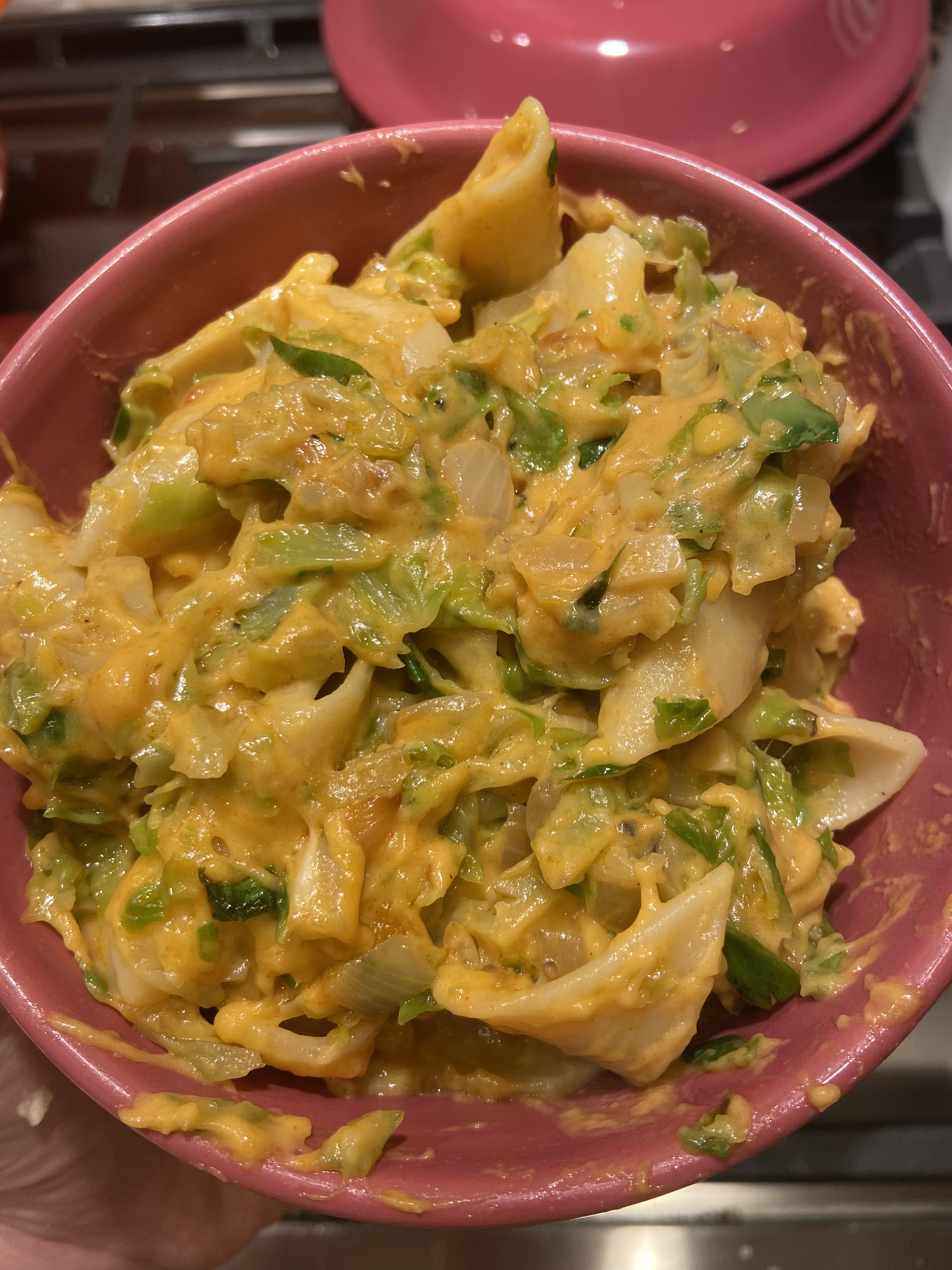 -When combined stir in your favorite cooked pasta then the brussel sporouts