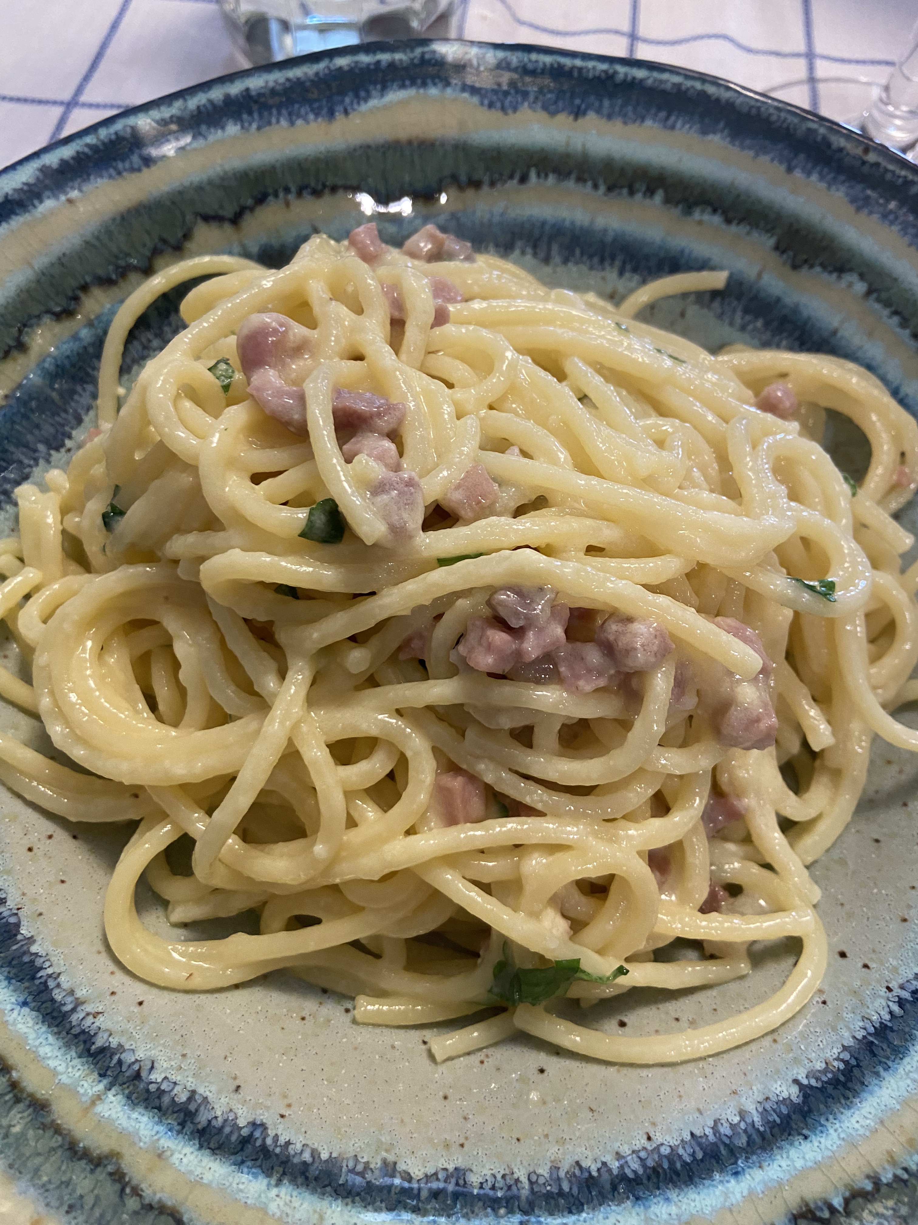 Grandmama (Nonna) makes the best carbonara in the world. No matter what restaurant I go to, even in Italy, it’s just not as good. I had to stand over her shoulder and write out what she was doing because just like every other Italian grandmother, her recipe isn’t written down. There are also no measurements on this, so measure with your heart.