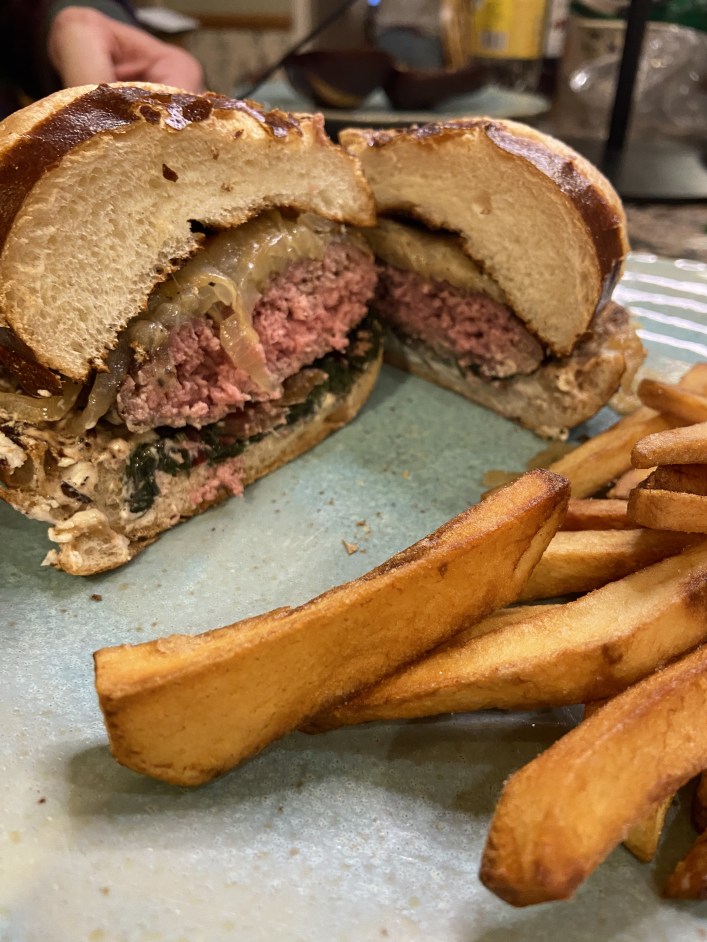 -Build your burger however you would like. This is how Bob suggests it: bottom bun, burger, chard, onions, top bun.