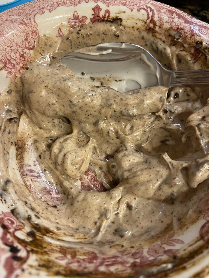 I mashed the garlic instead of putting it through the food processor like the recipe says. I really just didn’t want to have to wash the food processor..