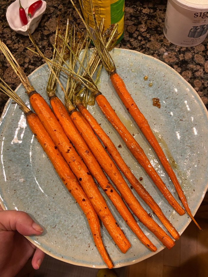 Glazed mandrake roots (carrots)