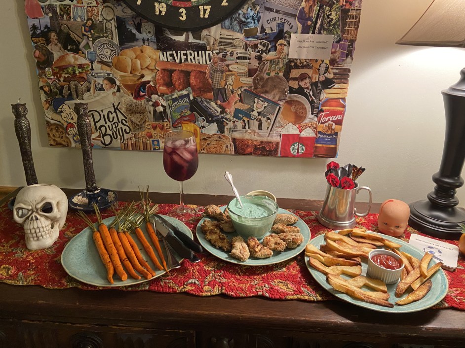 (This dip definitely looked like polyjuice but did not taste that great, so no recipe for this one. If I made it again I would do a mayo based dip with chopped pickles and scallions)