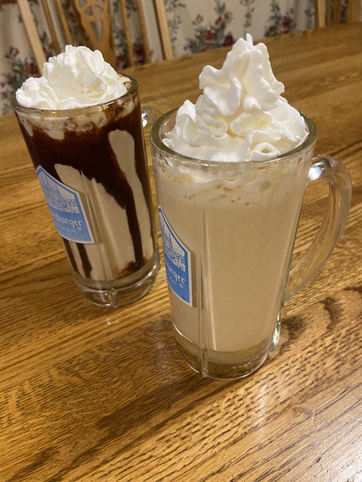 (Vanilla ice cream, pumpkin puree, milk, pumpkin pie spices, chocolate syrup and blend)
