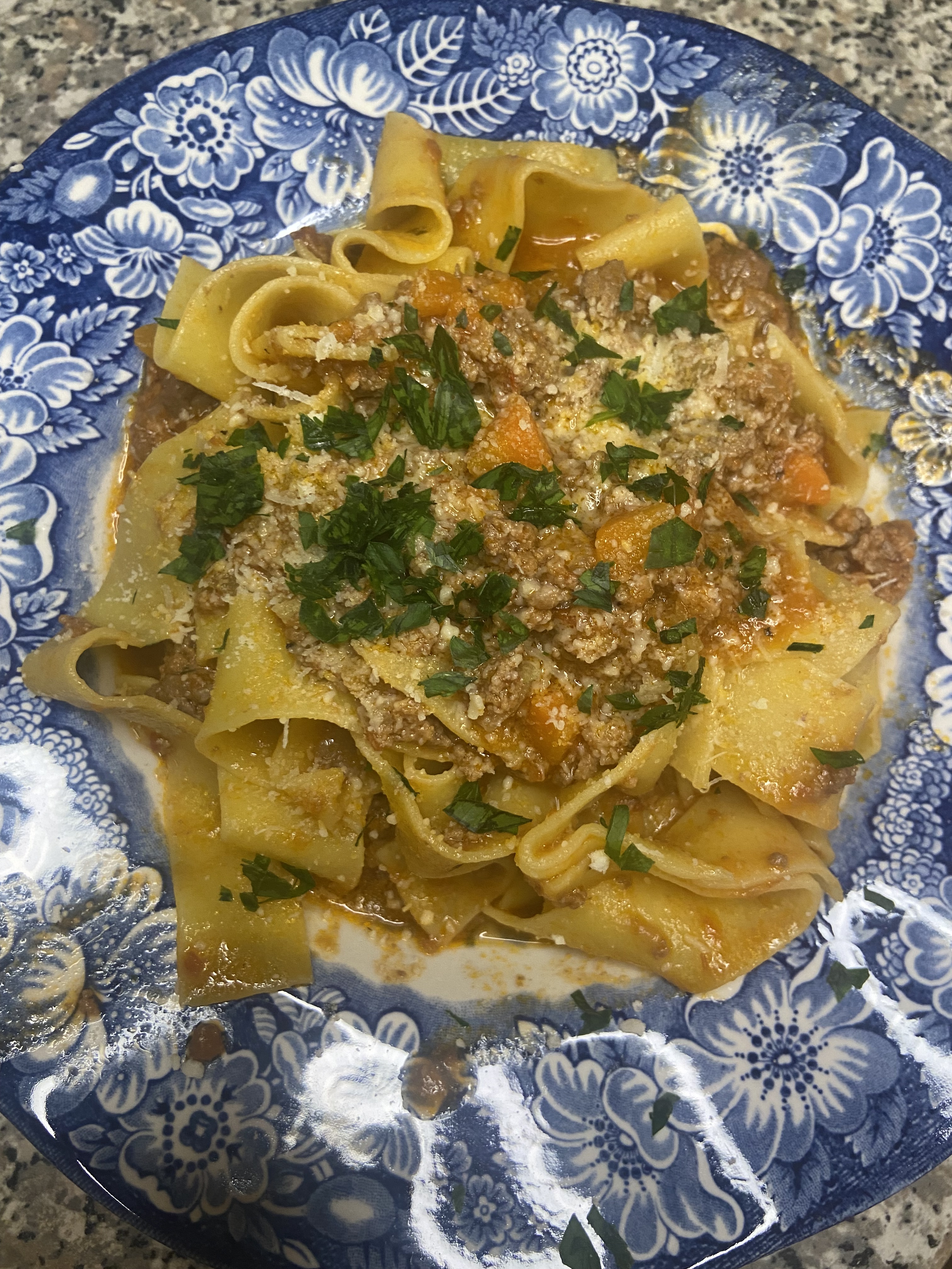 ***Pappardelle or tagliatelle are great with Bolognese, but as always, used whatever pasta your heart desires.