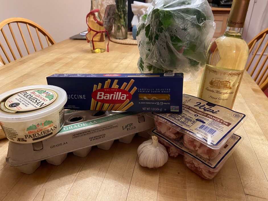 *I used fettuccine because that’s what I had but I prefer spaghetti with Carbonara. Use whatever you like!