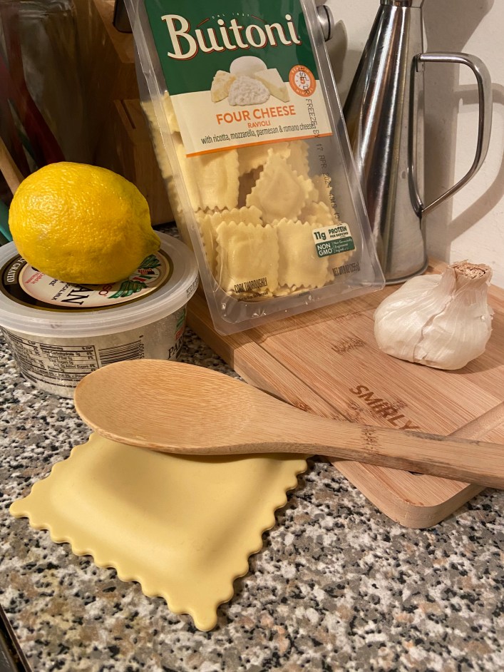 -Add pasta water and parmesan, mix well. Add a splash of cream and when the sauce comes together add ravioli and cook for a few minutes.