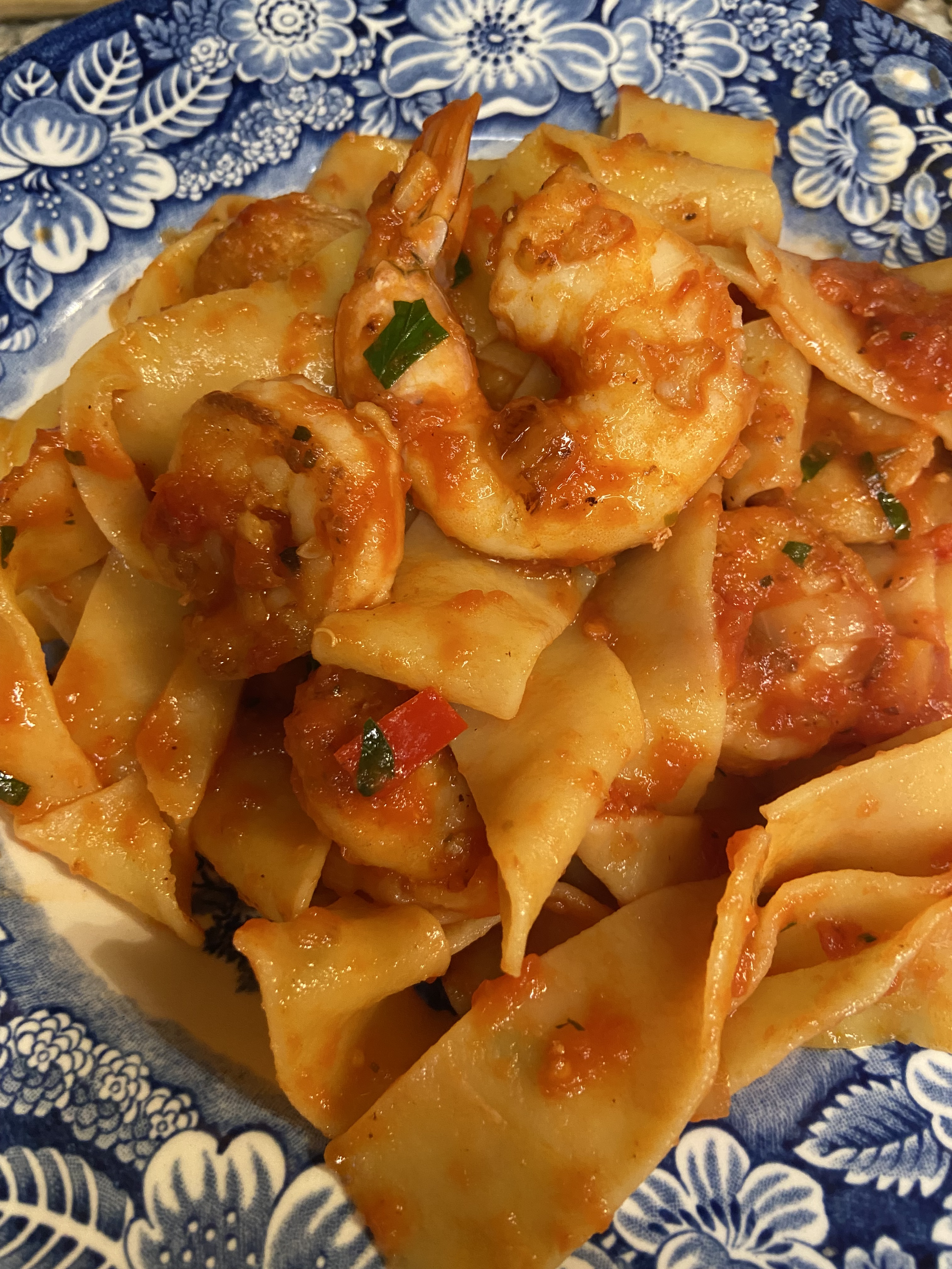 Welcome back to Pasta A-Z where I’m making pasta dishes from every letter of the alphabet. Today is F for Fra Diavolo. According to Wikipedia this dish is named after the nickname of 18th century guerrilla leader, “Friar Devil”. I knew it to mean devil aka its spicy. As much as I love spicy, I toned it down for my guests (mom I’m looking at you). I used only shrimp but you could really use whatever seafood you want for this dish.